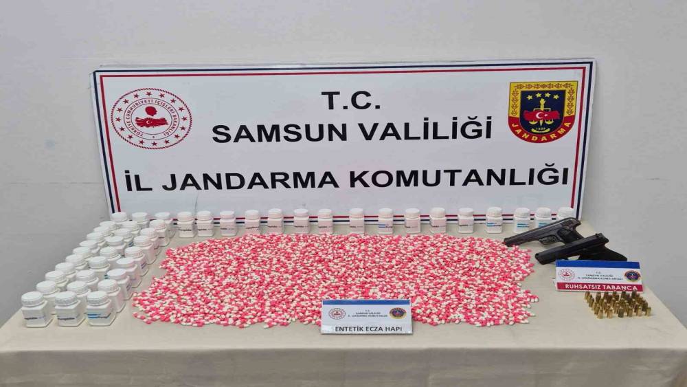 Samsun’da jandarma ekipleri tarafından düzenlenen uyuşturucu operasyonunda 2 kişi, 4 bin 566 adet uyuşturucu hap, 2 tabanca ve 100 adet tabanca fişeği ile yakalandı.