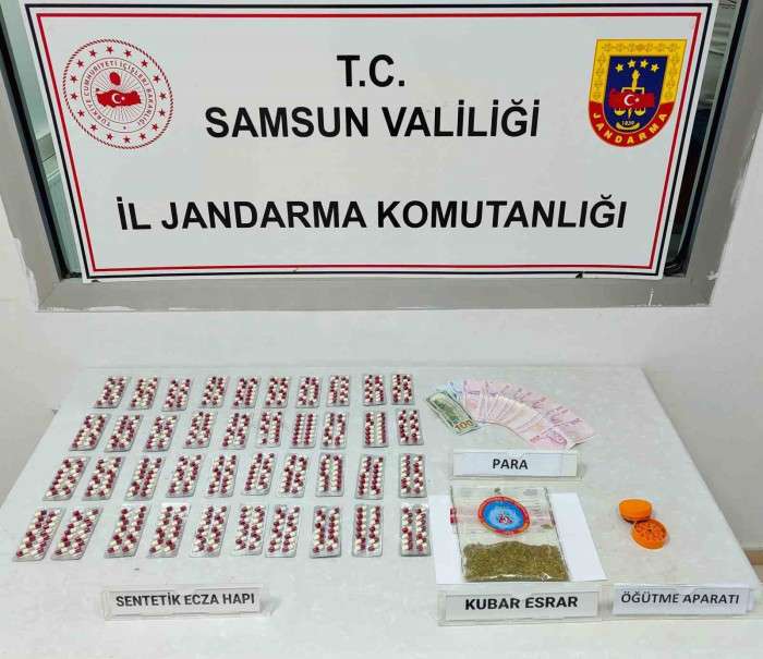 Samsun’un Çarşamba ilçesinde jandarma ekipleri tarafından uyuşturucu ve uyarıcı madde ticaretinin önlenmesine yönelik yapılan araştırma sonucu S.G. (33) isimli şahsın uyuşturucu madde bulundurduğu bilgisine ulaşıldı. Olayın öğrenilmesinin ardından Çarşamba İlçe Jandarma Komutanlığı ekiplerince şahsın üzerinde ve aracında yapılan aramada; 559 adet sentetik hap, 20 gram kubar esrar, 1 adet uyuşturucu öğütme aparatı, 4 bin 400 TL ve 100 dolar ele geçirildi.