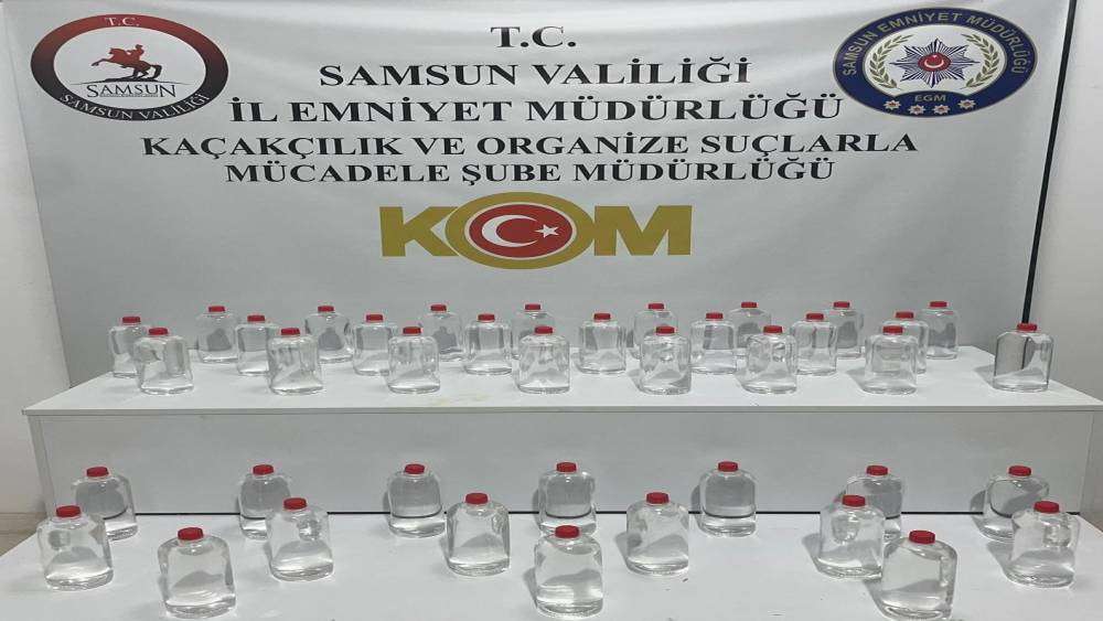 Samsun’da polis tarafından 40 litre etil alkol ele geçirildi.