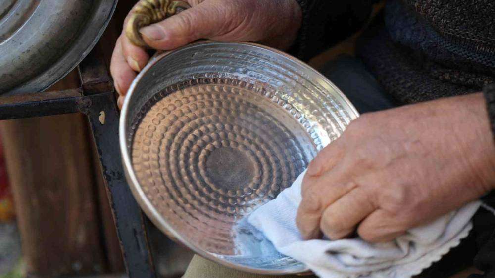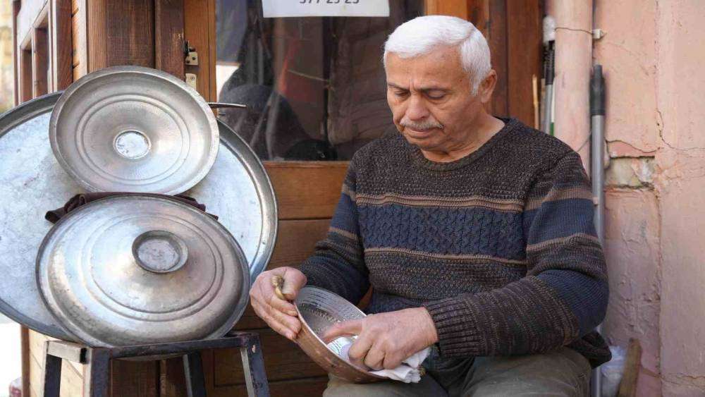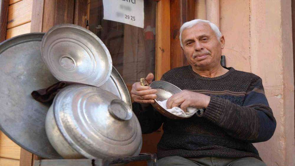 45 yıldır Sanat Sokağı’nda kalay yapan Öztürk, hala bakıra önem veren az sayıda vatandaştan gelecek kap kaçakları dükkanında bekliyor.