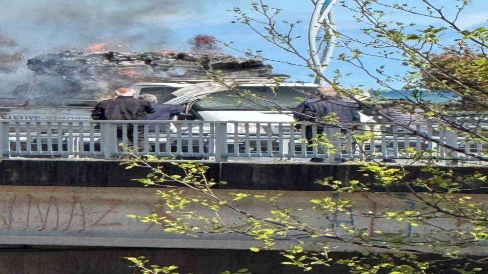Karadeniz Sahil Yolu’nda seyir halindeki kamyonet alev aldı