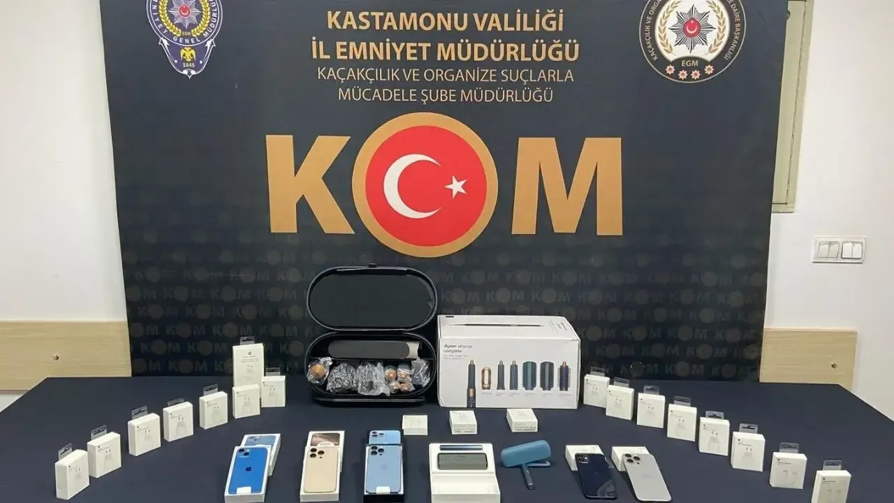 Kastamonu Emniyet Müdürlüğü Kaçakçılık ve Organize Suçlarla Mücadele Şube Müdürlüğü ekiplerince il merkezinde bir iş yerinde yapılan aramalarda 5 gümrük kaçağı cep telefonu, 19 şarj adaptörü, 4 şarj kablosu ve 2 elektronik sigara ele geçirildi.