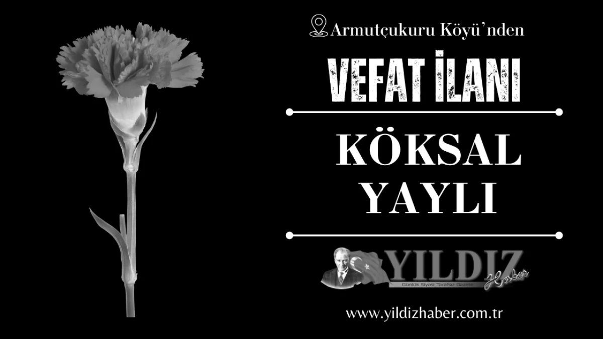 Armutçukuru Köyü'nden, Mustafa Yaylı'nın oğlu; Necmeddin Bahadır Yaylı'nın babası; Ormancı Köksal Yaylı vefat etti.
