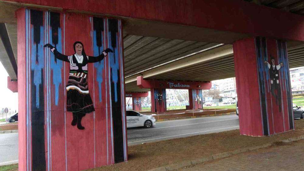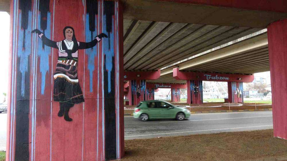 Trabzon en önemli şehir içi geçiş güzergahı olan Ayasofya viyadükleri duvarlarına şehri simgeleyen figürlerin yapılması dikkat çekiyor.