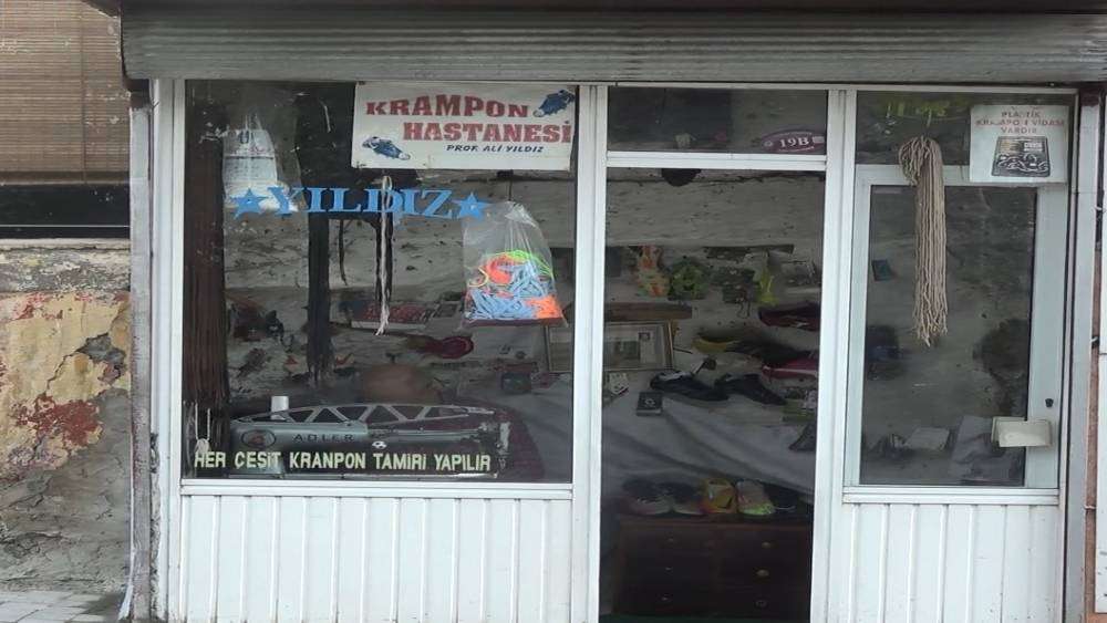 Trabzon’un Ortahisar ilçesinde ’Krampon Hastanesi’ adını verdiği iki metrelik işyerinde yarım asırdan fazla krampon tamiri yapan 63 yaşındaki Ali Yıldız, ’Krampon profesörü’ olarak tanınıyor.