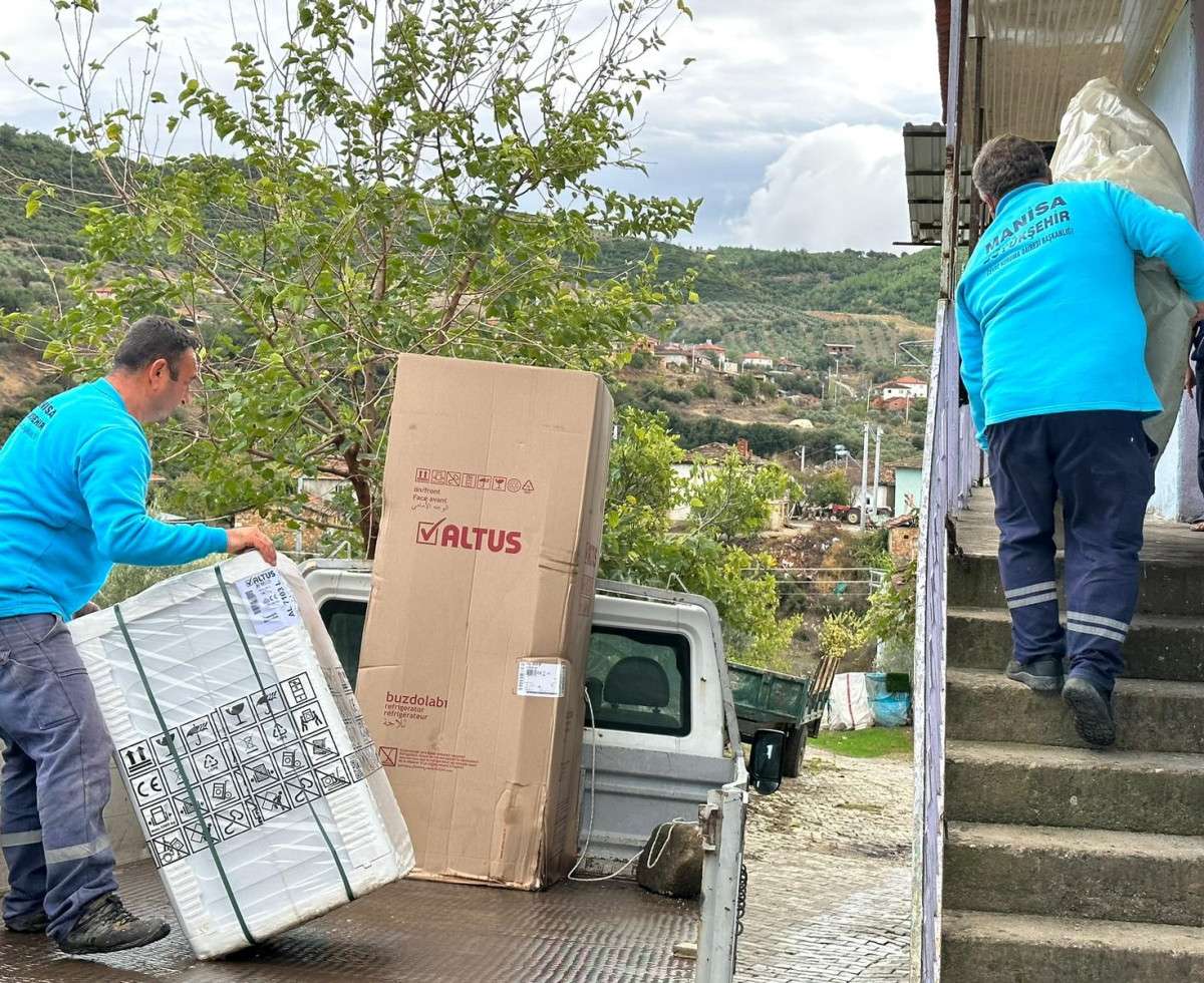 Manisa Büyükşehir Belediyesi, Köprübaşı ilçesinde evlerinde çıkan yangın nedeniyle eşyaları kullanılamaz hale gelen Bulut ailesinin yardımına koştu.