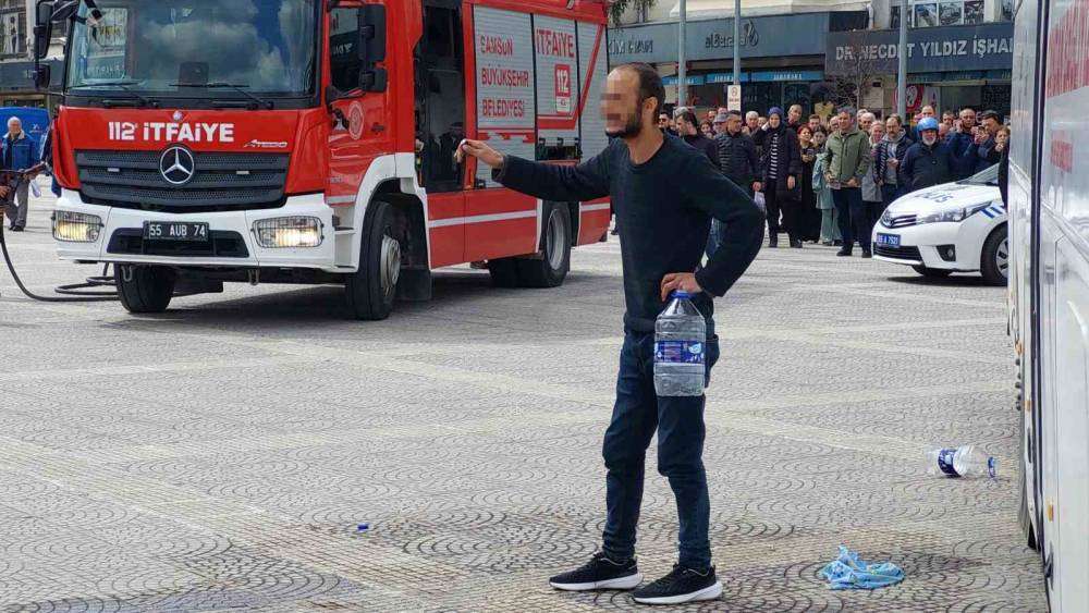 Olay, Samsun’un İlkadım ilçesi Kale Mahallesi’ndeki Cumhuriyet Meydanı’nda meydana geldi. Edinilen bilgiye göre, Atakum ilçesinin kırsal Kurugökçe Mahallesi’nde yaşayan Hakan Tüysüz (34), mahalle yolunun uzun süredir yapılmadığını ve yaşanan mağduriyetin giderilmediğini ileri sürerek tepkisini göstermek için meydanda kendini yakma teşebbüsünde bulundu.