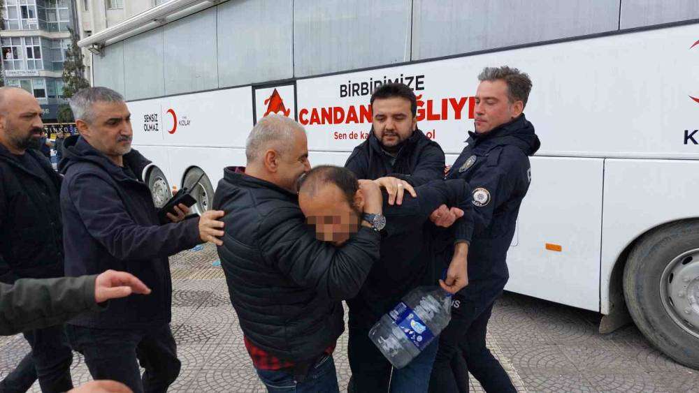 Mahalle yolunun yapılmadığı gerekçesiyle meydanda kendini yakmak istedi