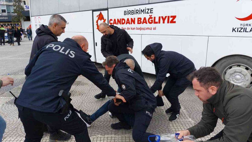 Gözaltına alınan şahıs, ifadesi alınmak üzere polis merkezine götürüldü.