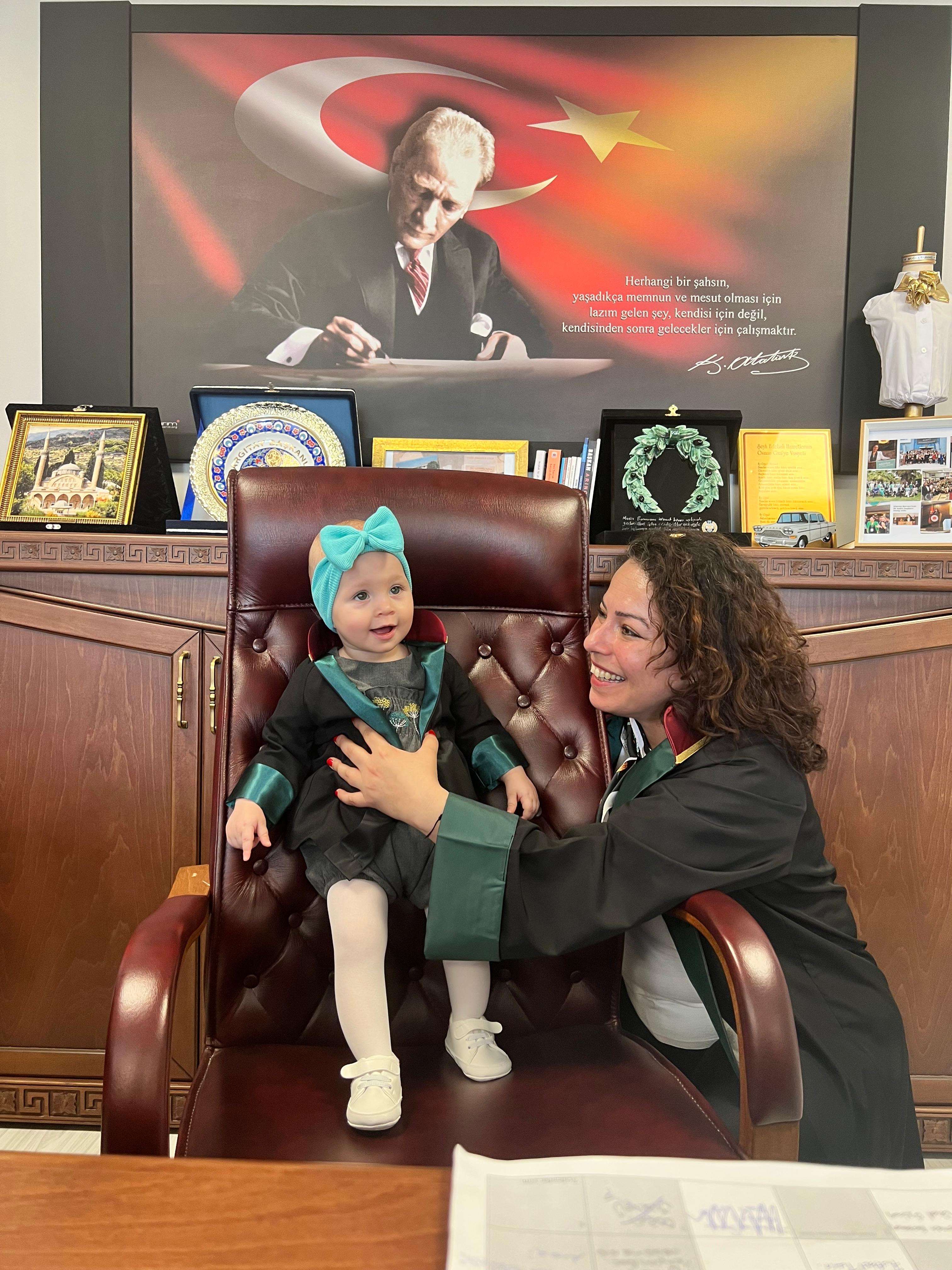 Manisa Barosu Başkanı Av. Sevgi Başak Yeşil, 23 Nisan Ulusal Egemenlik ve Çocuk Bayramı kapsamında koltuğunu 9 aylık Arya İner’e devretti.