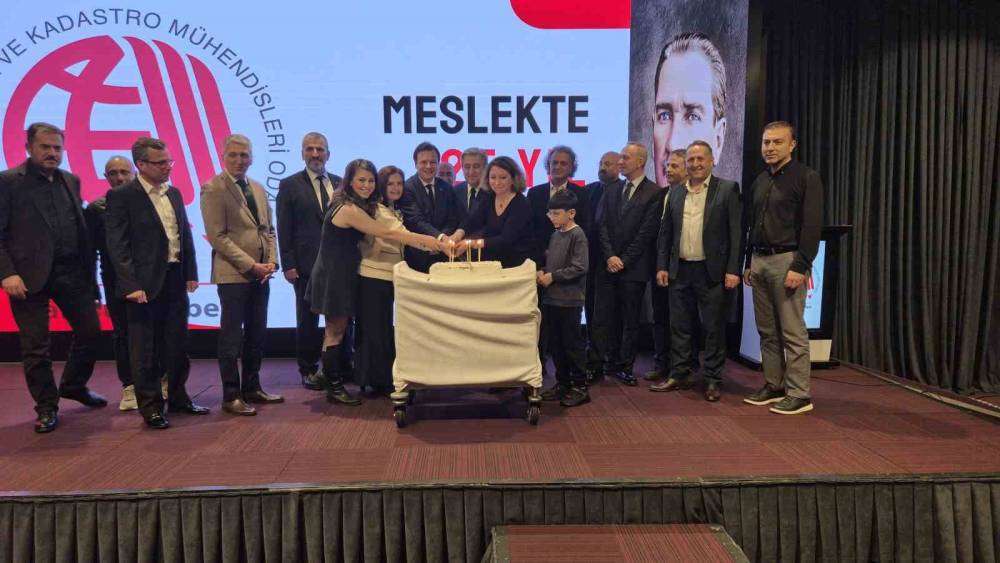 Meslekte 25 yılını dolduran üyeleri kutlayan Özdemir, "Harita mühendisliği 100 yıldır bu ülkenin imarında, altyapısında, kalkınmasında, gelişiminde anahtar görevler üstlenmiştir. Bugün 25. meslek yılını kutladığımız üstatlarımız sayesinde ülkemizin ve halkımızın birçok sorunu çözüme kavuşmuştur. Meslekte 25. hizmet yılını dolduran üyelerimize, ülkemize ve mesleğimize vermiş oldukları katkıları, hizmetleri ve emeklerinden ötürü sonsuz teşekkür ediyor, 25. hizmet yıllarını kutluyorum" diye konuştu.