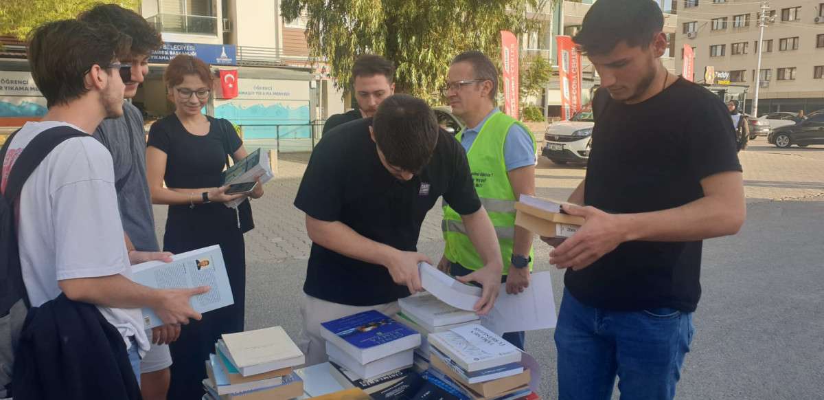 Karşıyaka Mavişehir Muhtarlığı mahalle sakinlerinin lisans eğitiminde kullanıp şu an âtıl durumda olan eğitim kitaplarını lisans öğrencilerine ulaştırıyor.