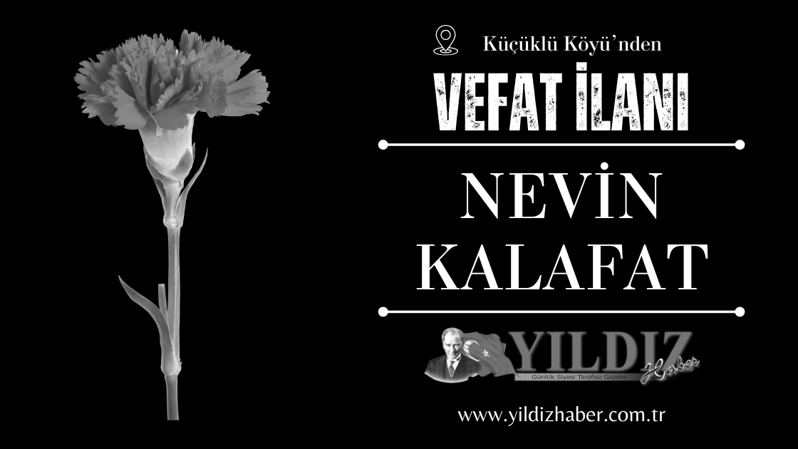 Küçüklü Köyü’nden merhum eski muhtar Muzaffer Kalafat’ın gelini; Arzu Kalafat’ın annesi; Şenel Kalafat’ın eşi, Nevin Kalafat vefat etti.