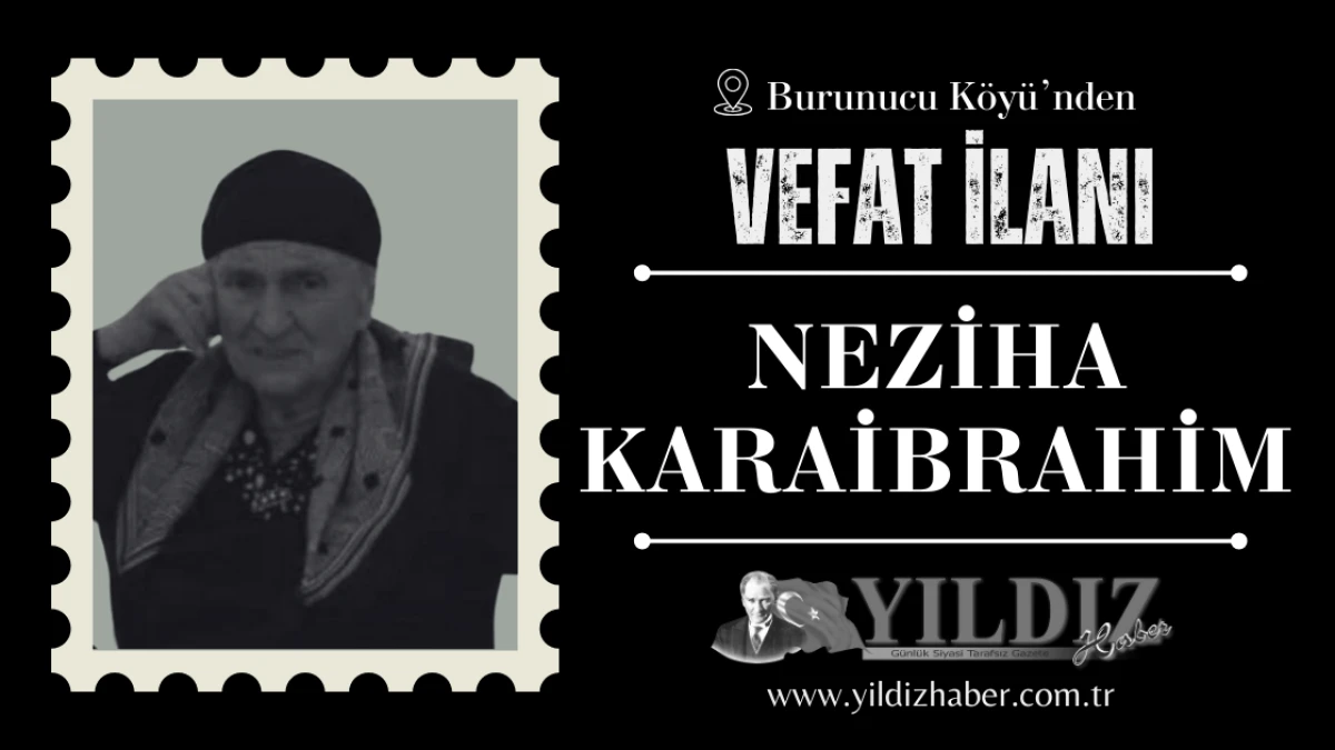 Burunucu Köyü'nden, Karaibrahimzade Hacıağa’nın kızı; Nafi, Metin, merhum Cem Karaibrahim, Zeynep Erdoğan, Ahmet, Aslı Karaibrahim ve Onur Berrak Erdoğan’nın halaları Neziha Karaibrahim vefat etti.