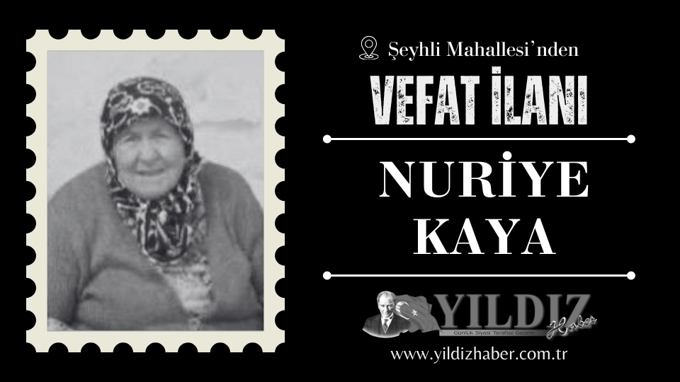 Şeyhli Mahallesi'nden, merhum Hakkı Kaya'nın eşi; Yücel Kaya'ın annesi Nuriye Kaya vefat etti.