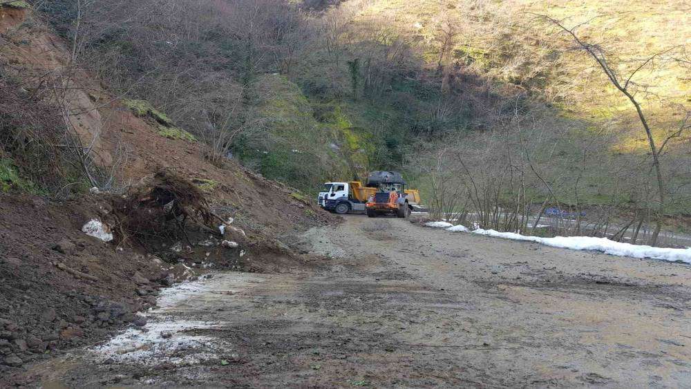Ordu Büyükşehir Belediyesi ekipleri, eriyen kar kütleleri sonrası meydana gelen heyelanlara müdahale ediyor.