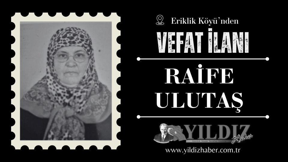 Merhum Nedim, Nedime, Halil, Ünal, Refike ve Zübide'nin ablaları, Ali Tevfik, Ufuk, Arziye ve Huriye'nin anneleri; İsmail Yoğunali'nin kayınvalidesi Raife Ulutaş vefat etti.