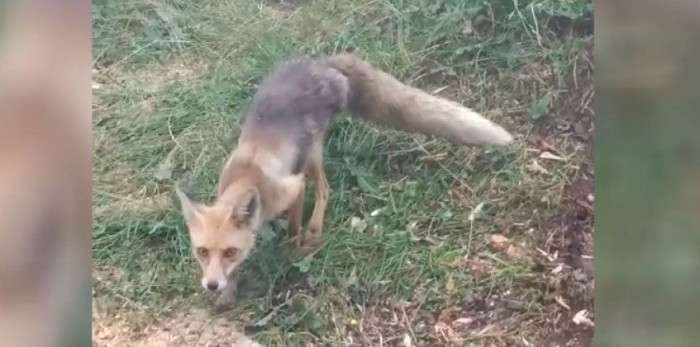 Karnını doyuran tilki, daha sonra bölgeden uzaklaştı.