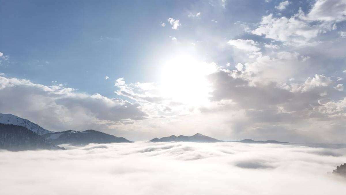 Kaçkar Dağı eteklerine kadar yükselen sis bulutu, dronla havadan görüntülendi.