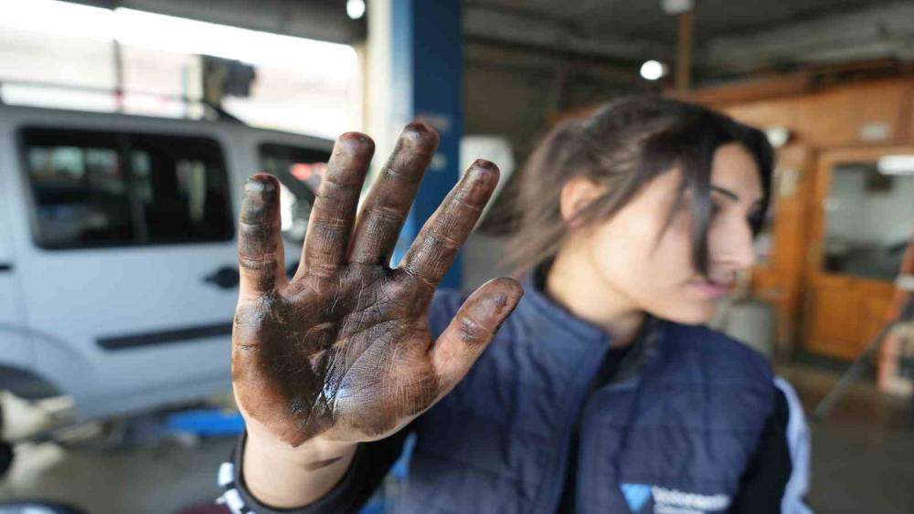 Samsun’da meslek lisesinin motorlu araçlar teknolojisi bölümünde eğitim gören 17 yaşındaki lise öğrencisi Yağmur, sanayide bir oto tamirci dükkanında ’çırak’ olarak çalışıyor.