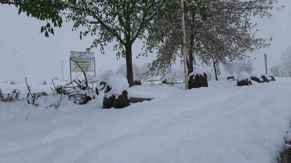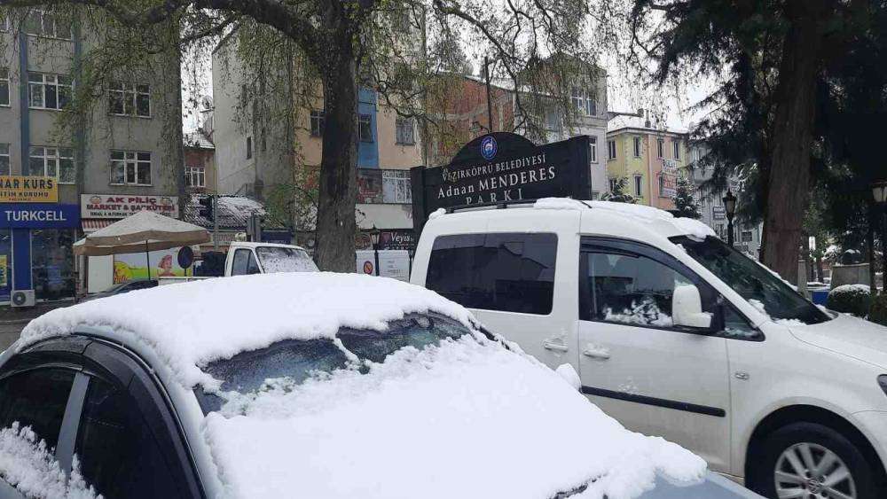 Samsun’un Vezirköprü ilçesinde Nisan ayında kar yağışı etkili oldu.