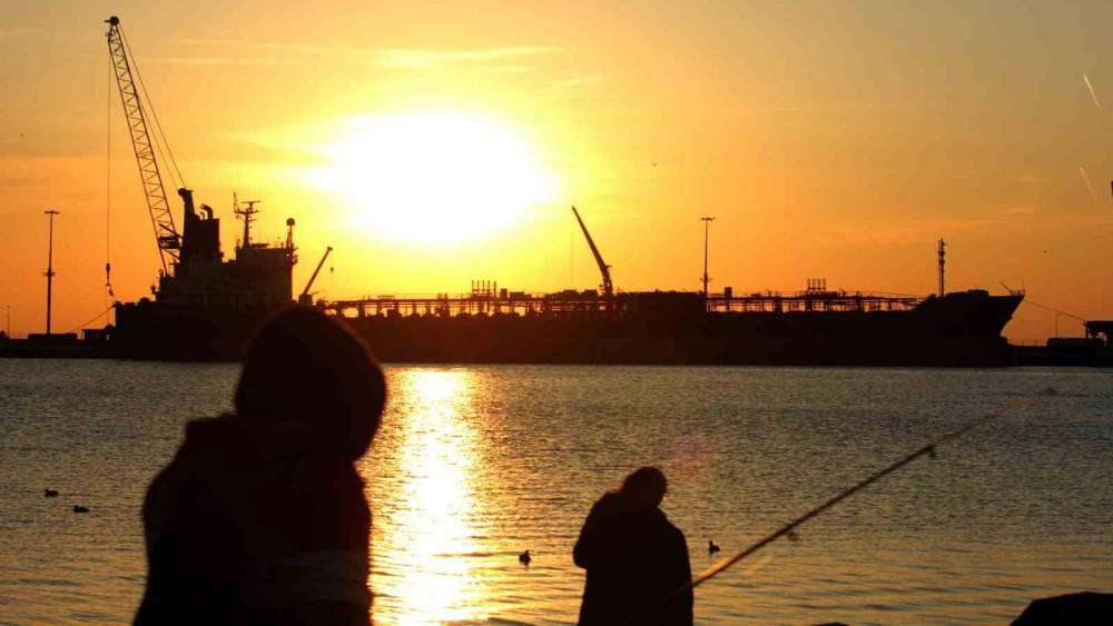 Samsun’da güneşin denizden doğuşunda muhteşem bir manzara ortaya çıkıyor. Vinç ve güneşin çakışması ise görenleri hayran bırakıyor.