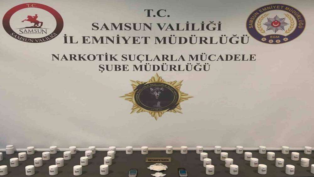 Edinilen bilgiye göre, Samsun Emniyet Müdürlüğü Narkotik Suçlarla Mücadele Şube Müdürlüğü ekipleri, İlkadım ilçesinde uyuşturucu ticaretine yönelik operasyon düzenledi. S.Ö. (27) ve F.K. (30) isimli şahısların üzerlerinde ve ikametlerinde yapılan aramalarda, 2 bin 599 adet sentetik ecza, 43 gram metamfetamin ve 3 adet hassas terazi ele geçirildi. Olayla ilgili soruşturma başlatıldı.