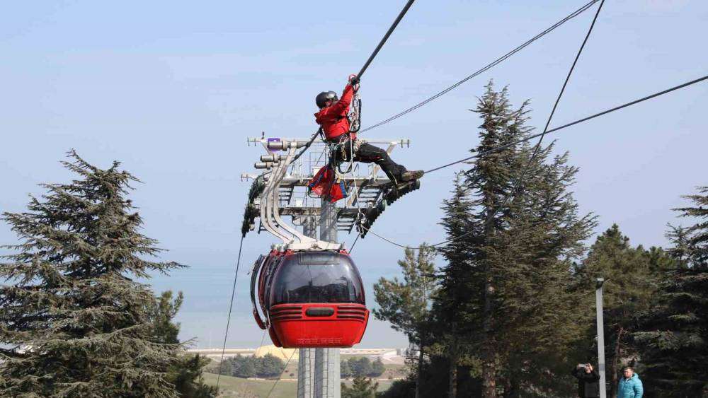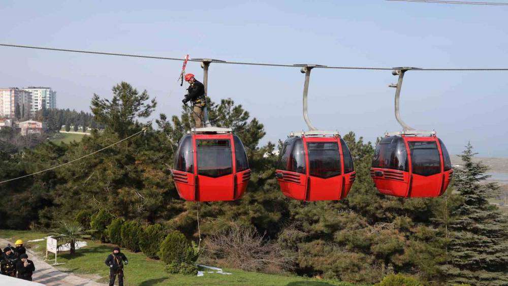 Samsun’da yenilenen ‘teleferik hattı’ için özel kurtarma eğitimi