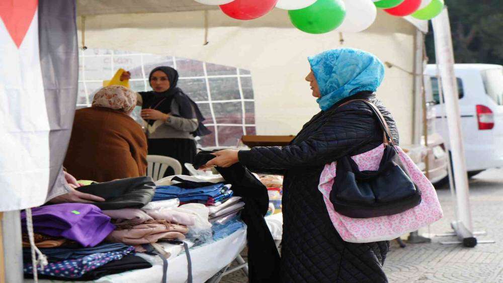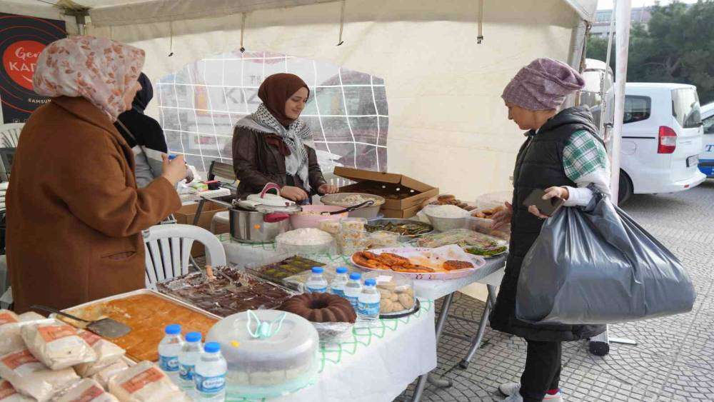 Samsun’da, Filistin halkına destek olmak amacıyla "Gazze’ye Kardeş Payı Hayır Çarşısı” açıldı.Kadın ve Demokrasi Derneği Samsun İl Temsilciliği tarafından Filistin halkına destek olma amacıyla Cumhuriyet Meydanı’nda hayır çarşısı kuruldu. Vatandaşlar bu çarşıdan yaptıkları alışverişler ile Filistinlilere destek oldular.Çarşı hakkında bilgi veren derneğin Samsun İl Temsilcisi Senagül Şahin Sohum, “Ümmetin kanayan yarası Gazze’de 400 gündür yaşanan zulüm için buradayız. Yaşam hakları elinden alınan kadınlar, çocuklar, hayatta kalmayı başarsalar bile kabul edilemez şartlarda yaşamaya zorlanıyor. Elimizden maddi destek ve boykotun dışında hiçbir şeyin gelmediği şu günlerde Hazreti İbrahim’in ateşine su taşıyan karınca misali kardeşlerimiz için bu çarşıyı düzenledik. Dernek olarak kurulduğumuz günden beri kadınların ve hatta tüm insanlığın onurlu bir yaşam sürmesi için mücadele ediyoruz, etmeye de devam edeceğiz” dedi.