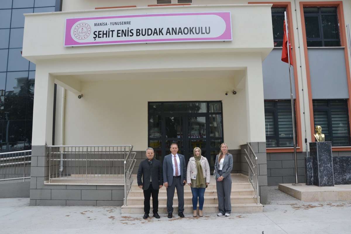 Yunusemre İlçe Milli Eğitim Müdürü Yıldıray Demirtaş, Şehit Enis Budak’ın isminin Yunusemre ilçesinde bir Anaokuluna verildiğini kaydetti. Yunusemre İlçe Milli Eğitim Müdürü Yıldıray Demirtaş, beraberinde kurucu müdür olarak görevlendirilen Anaokulu Kurucu Müdürü Sedef Erdoğan ile Vakıfbank Türk Birliği okulu bahçesinde yer alan Anaokulu binasını gezerek açıklamalarda bulundu. Okula Manisalı Şehit Enes Budak’ın isminin verildiğini söyleyen Demirtaş, okulda 8 sınıfın bulunduğunu 110 öğrencinin eğitim alacağını açıkladı. Demirtaş, “Kurucu okul müdürümüzün görevlendirilmesi yapıldı. Okulumuzun birkaç eksiği var. Onları da en kısa zamanda tamamlayıp açılışa hazır hale getireceğiz. Resmi açılış törenini bayramdan sonra yapmayı planlıyoruz” dedi.