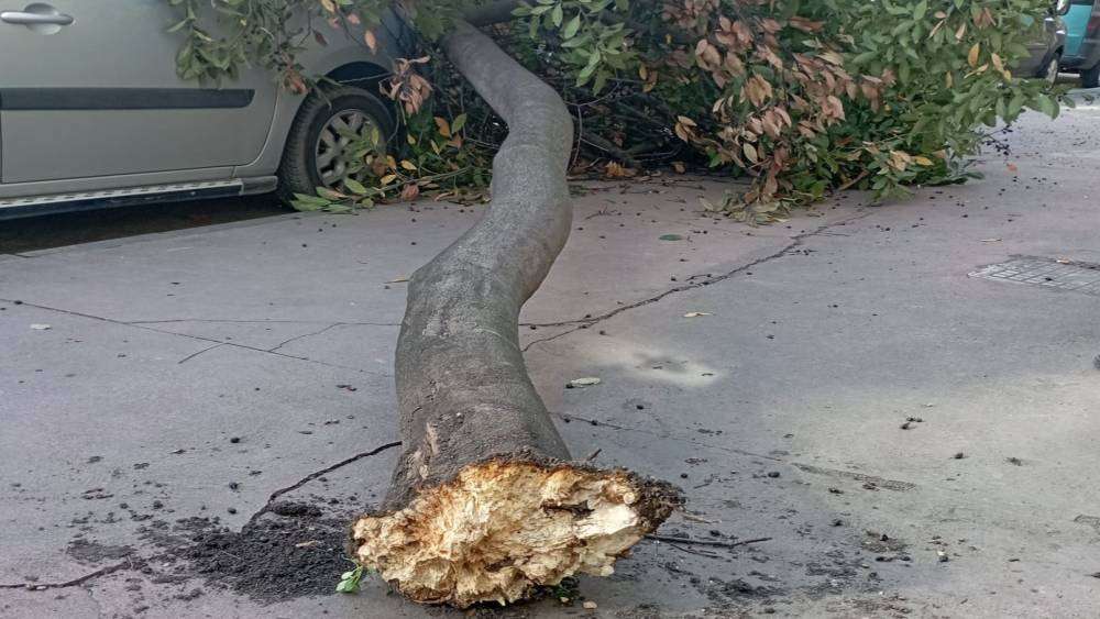 Samsun’da şiddetli rüzgarda dibinden kırılan ağaç, park halindeki 2 aracın üzerine devrilerek maddi hasara neden oldu.