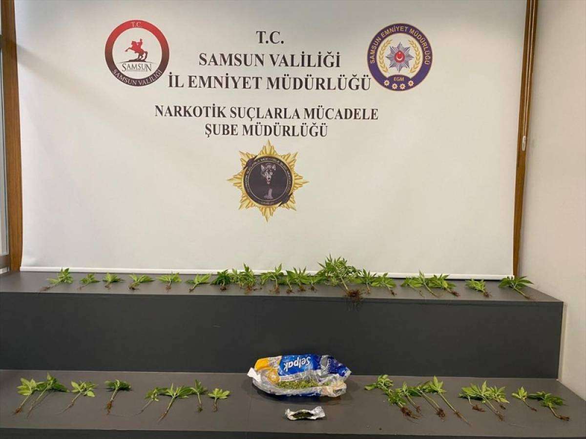 Tekkeköy ilçesi Sanayi Mahallesi'nde belirlenen adrese operasyon düzenleyen ekipler, yaptıkları aramada, ikametin çatı katında saksılara dikilmiş 41 kök Hint keneviri ile 12,25 gram esrar ele geçirdi.