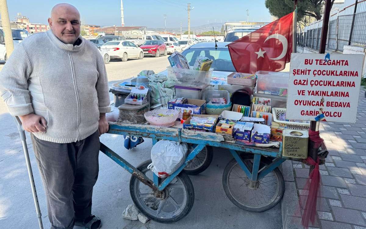 Soma’da 12 yıldır yaşayan ve 10 yıldır seyyar aracıyla oyun satan Cevdet Demirkıran, tezgahında anlamlı bir iyilik hareketine imza atıyor. Oyuncak tezgahında şehit çocuklarına, gazi çocuklarına ve yakınlarına ücretsiz oyuncak veriyor. Bununla da yetinmeyip, maddi durumu olmayan çocuklara da gönlünden koparak oyuncak hediye ediyor.