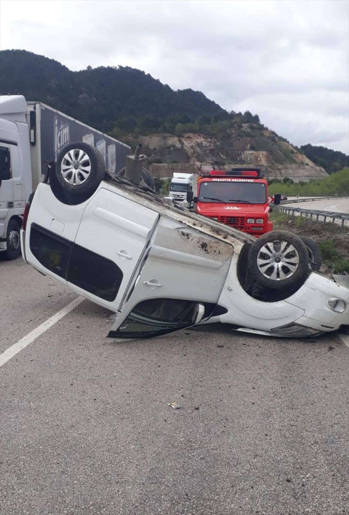 İ.G. idaresindeki 25 ACC 388 plakalı hafif ticari araç, Tokat-Reşadiye kara yolu Gökçeoluk köyü yakınlarında kontrolden çıkarak devrildi.
