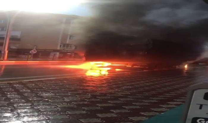Öte yandan yangına itfaiye ekiplerinin müdahalesi, cep telefonu kamerasıyla görüntülendi.