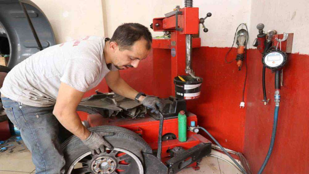 Kent merkezindeki oto lastikçilerin hemen hepsinde aşırı yoğunluk yaşanırken düne göre işler yüzde 100’den fazla arttı.