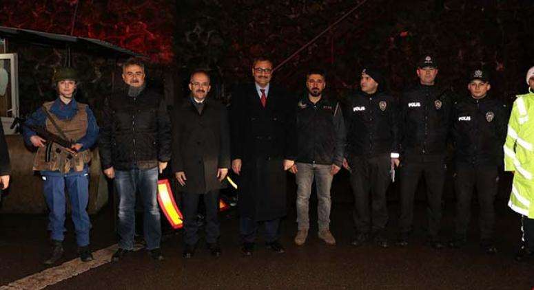 Vali Sarıfakıoğullar, vatandaşlarımızın 2019 yılına huzur, rahat ve güvenlik içerisinde girmesini temin için gece-gündüz özveri ile çalışan güvenlik güçlerini görevleri başında yalnız bırakmayarak, yılbaşı gecesi için alınan önlemleri yerinde kontrol ederek, çalışmalar hakkında İl Emniyet Müdürü Fahri Aktaş'tan bilgi aldı.