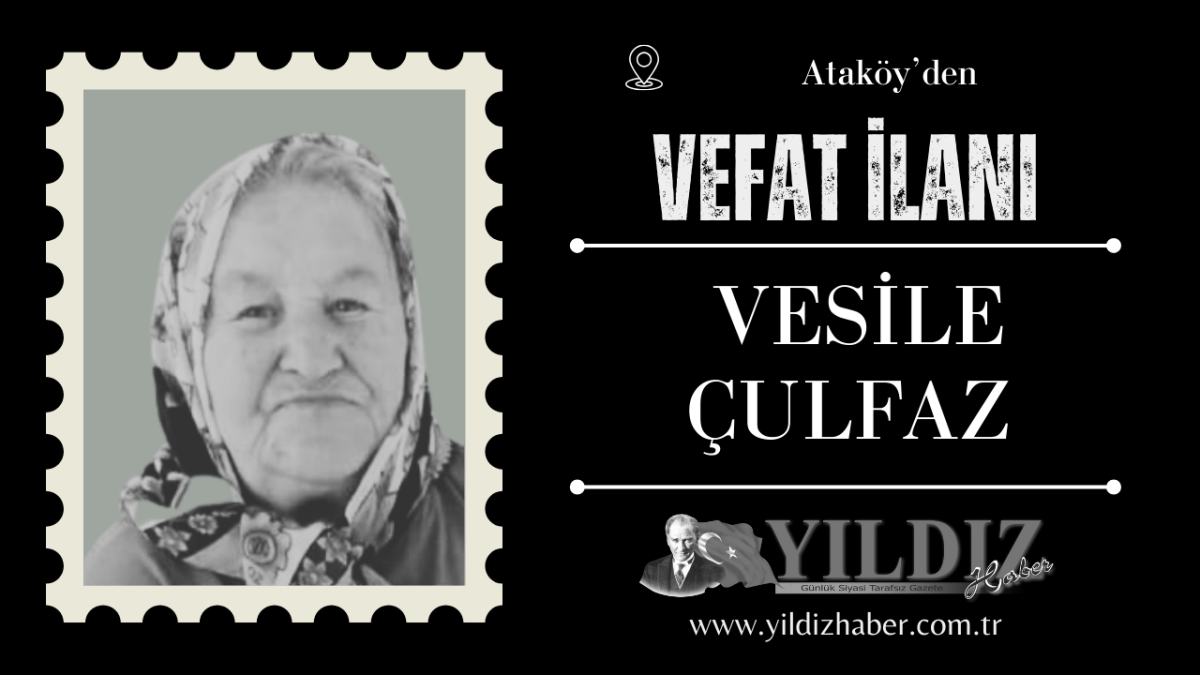 Ataköy’den Lazoğullarından, Merhum Nabi, Merhum Eyüp, Gülcan ve Nurcan’ın anneleri, Alişan, Hasan, Tayyar, Merhume Fikrîye ve Fatma’nın kardeşleri Vesile Çulfaz vefat etti.