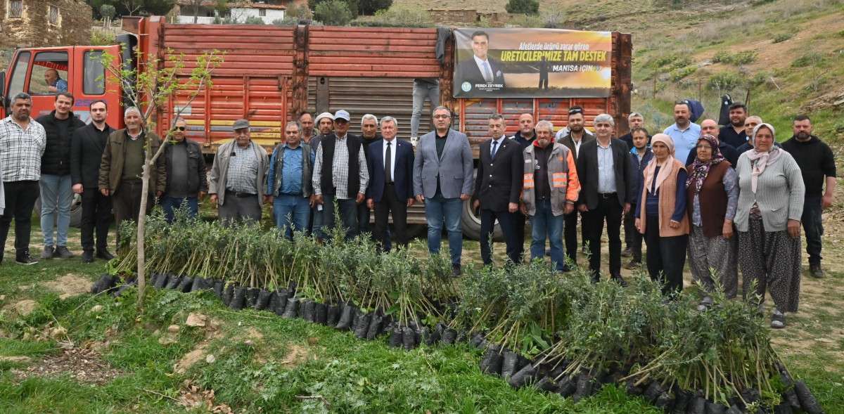 Manisa Büyükşehir Belediyesi, 2024 yazında çıkan yangınlarda ekili dikili alanları önemli ölçüde yanan üreticilere, yüzde 100 hibeyle fidan desteğinde bulundu.