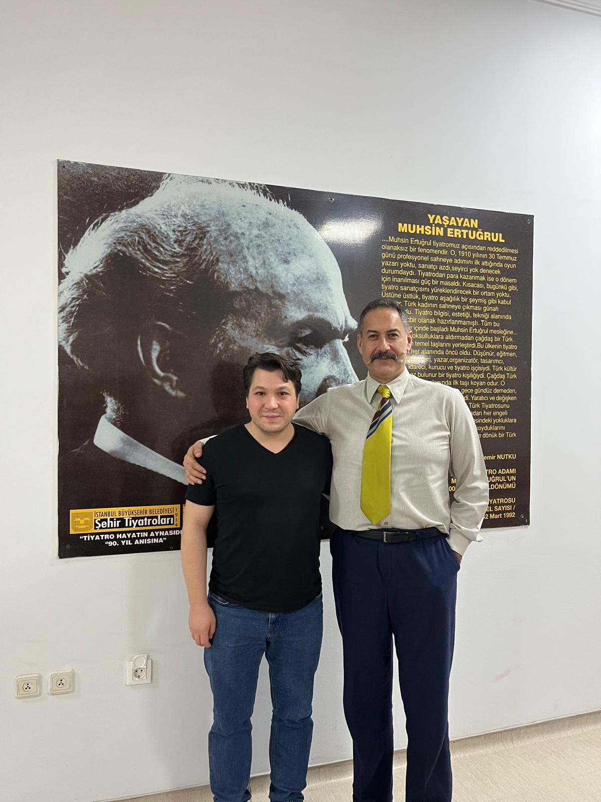 İstanbul Şehir Tiyatroları’nın Ümraniye Sahnesi’nde buluştuk. Burası sıradan bir tiyatro binası değil. 111 yıllık bir kurumun hâlâ yaşayan hafızası. Bu ülkede sahnenin yalnızca dekorla değil, fikirle ve disiplinle kurulduğunu hatırlatan nadir yerlerden biri. Kurucusu Muhsin Ertuğrul’un bakışı hâlâ duvarlarda. O bakış, oyuncuya şunu hatırlatır: Burada rol geçici olabilir ama taşıdığın çizgi kalıcıdır. Fotoğraf çektirdik. O kare bir hatıra değil, bir sürekliliğin belgesiydi. Bir sanat anlayışının, on yıllara rağmen geri adım atmadığının sessiz ama çok güçlü kanıtıydı.