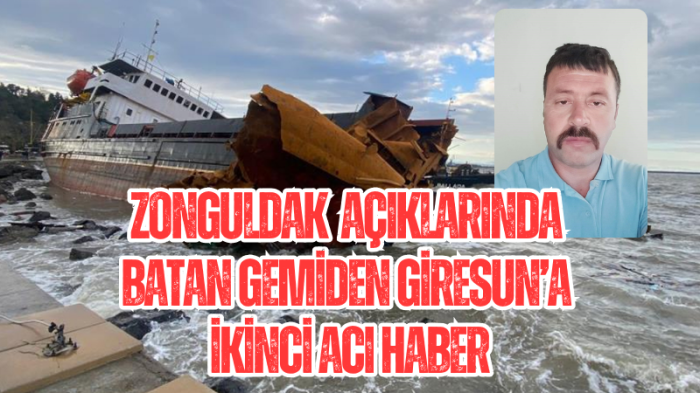 Zonguldak açıklarında batan gemiden Giresun’a ikinci acı haber.