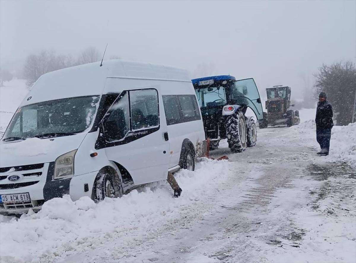 Öğrenci servisi, daha sonra İlçe Özel İdaresi ekiplerinin ve vatandaşların yardımıyla saplandığı yerden kurtarıldı.