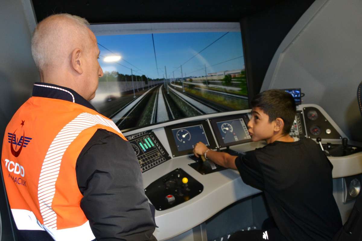 Emniyet Denetim Sistemi Müdürü Yasin Taksim “Demiryolları olarak öğrencilerimizin, halkımızın güvenli bir şekilde, emniyetli bir şekilde yolcu trenlerimizden, yük trenlerimizden yararlanmaları için çocuklarımıza farkındalık oluşturmak için buradayız. Burada bir makinistin gerçek bir sürüş deneyimini yaşamasını sağlıyoruz. Yol aynı, hatta çıkan işlemler aynı. Aynı zamanda küçük bir kamu spotlarımız var. Farkındalık oluşturmaya çalışıyoruz. Öğrencilerimiz Ankara güzergahında iki istasyon arasında tren kullanıyorlar. Projeye ilk Manisa’da başladık. Özellikle demiryolunun yakınındaki okullardan bunu sürdürmeyi planlıyoruz. Çocukların sağlıklı bir şekilde karşıya geçmelerini sağlamak için, yollarda oynamamaları için, “dur bak dinle geç” diyoruz. Bir demiryoluna yaklaştığı zaman bu sadece çocuklar için değil büyükler için de geçerli bir durum. Önce duracak, sonra bakacak sonra dinleyecek ondan sonra emin olduktan sonra geçecek. Tren yollarında istenmeyen hadiselerin gerçekleşmemesi için bu konuda çocuklarımızdan başlıyoruz” dedi.